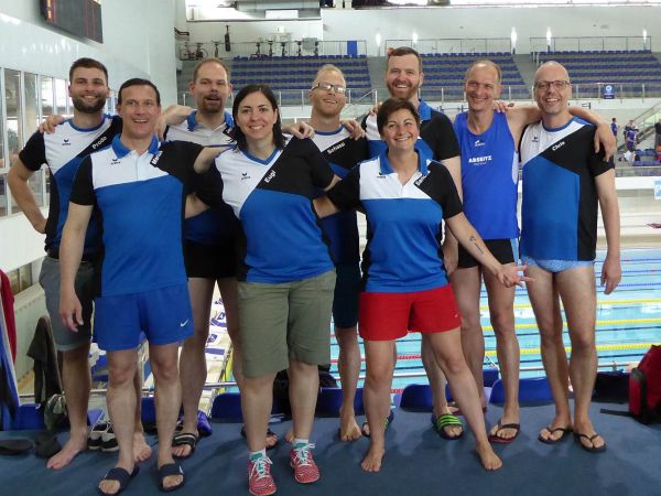 Zurück zu unserer Grillgemeinschaft im Garten: wir Abseitz-Schwimmerinnen und Schwimmer haben uns wochenlang intensiv mit unzähligen Sprint-Serien und anstrengenden Ausdauer-Übungen auf Helsinki vorbereitet. Die Ernte durften wir nun im Mäkelänrinne Swimming Pool einfahren. Wir haben an fünf Staffeln teilgenommen. Bei den vier 4 x 50 m Staffeln (Freistil Männer, Freistil Mixed, Lagen Männer, Lagen Mixed) haben wir viermal Gold geholt und einen neuen Staffel-Vereinsrekord aufgestellt, bei der 4 x 100 m Freistilstaffel Männer gab es noch Silber. Bei den Einzelstarts haben die zwei Schwimmerinnen und sieben Schwimmer achtmal Gold, zehnmal Silber und fünfmal Bronze geholt. Eine tolle Teamleistung! Beste Stimmung in der Mannschaft, ein tolles Schwimmbad und eine sehr gute Wettkampforganisation der stets entspannten Finnen rundeten das Bild ab.
