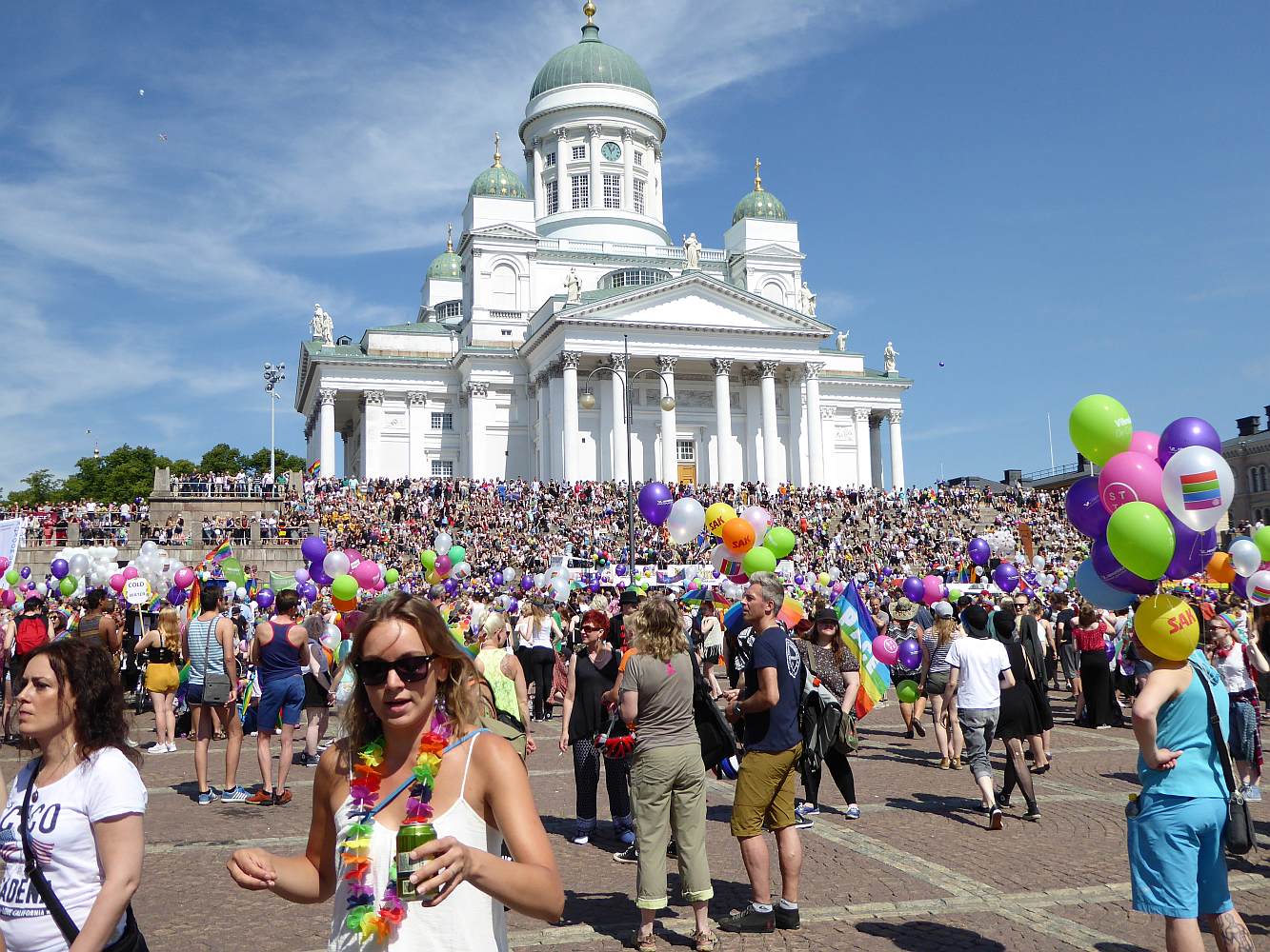 Noch nie haben die Eurogames an einem Ort stattgefunden, der so hoch im Norden liegt. Wer bei Finnland jetzt an kalte Temperaturen und Regenwetter denkt, der täuscht sich. Währen des schwul-lesbischen Europaturniers ging es in Helsinki heiß her. Sonnenbrille und kurze Hosen waren beim heimischen Kofferpacken bessere Wahl als Regenschirm und Pullover. Der finnische Wettergott meinte es wirklich gut mit den Sportlerinnen und Sportlern aus ganz Europa. Die Schönwetterperiode hielt von der Eröffnungsveranstaltung am Mittwoch im Eurogames-Village beim Bahnhof über die beiden folgenden Wettkampftage an und fand ihren Höhepunkt am Samstag bei der Helsinki Pride. Die Parade begann am Senatsplatz am Dom mit einer beeindruckenden Menschenmenge und einem wogendem Meer aus bunten Luftballons. Die schiere Länge des Paraden-Zugs stellte selbst den CSD in Stuttgart in einen dunklen Schatten. Es gab weniger Wägen als in anderen Städten, aber man hatte den Eindruck, halb Helsinki läuft bei der Parade mit.
