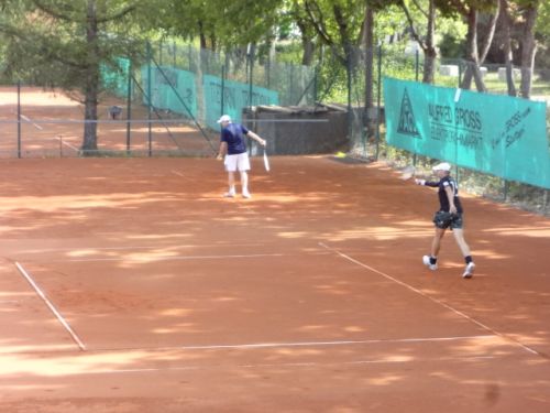 Nach fast neun Stunden auf dem Tennisplatz mit Müsliriegeln, Obst, Hefezopf und Heidelbeermuffins ließen wir den Turniertag auf der Terrasse des italienischen Restaurants „Dobermann“ in der Nachbarschaft bei Pizza und Pasta gemütlich ausklingen.