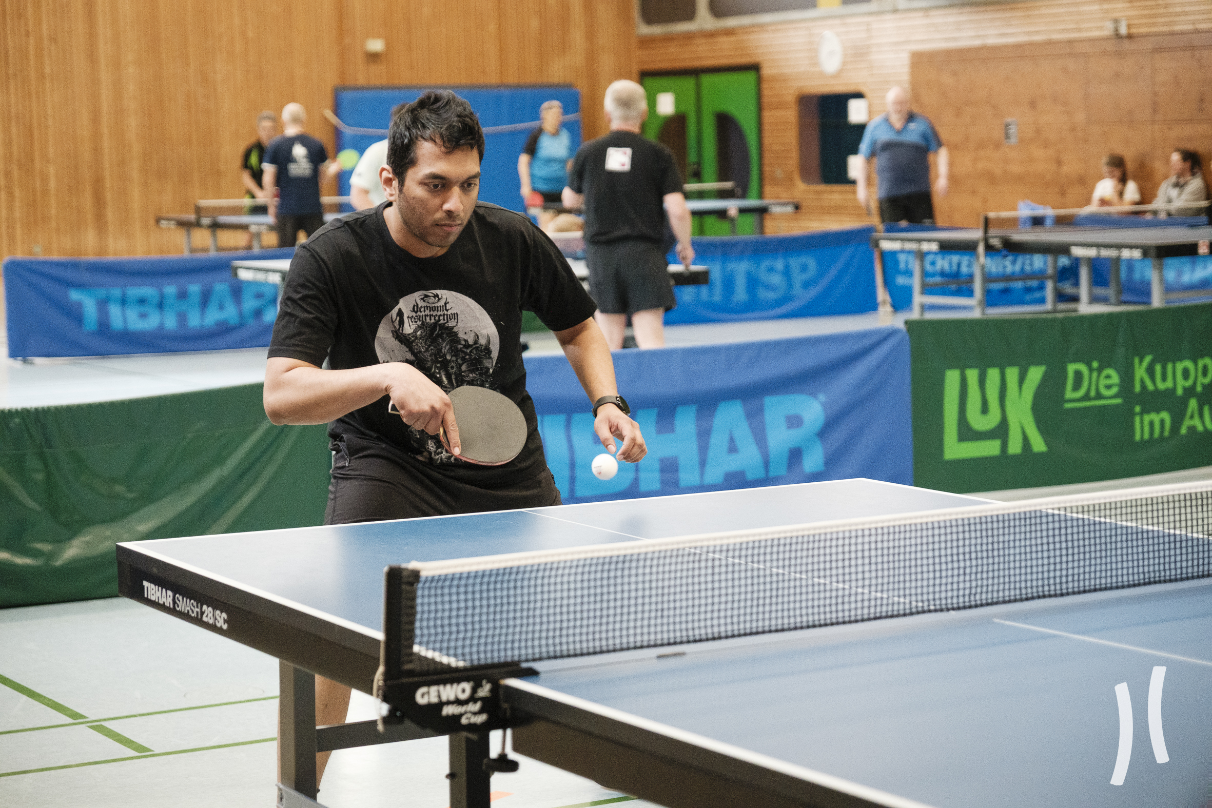 - Wir spielen an 12 bis 15 Tischen. Es wird im Modus "Schweizer System" gespielt. Das heißt, den Spielenden sind 5 bis 6 Spiele garantiert, und es ergeben sich im Laufe der Spiele ähnlich starke Partien.