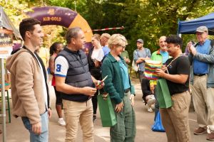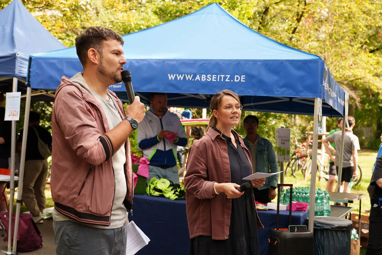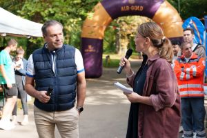 Schirmteam: Astrid Fünderich, Hauptdarstellerin, und Rolf Steinacker, Produzent der beliebten Serie "SOKO Stuttgart"