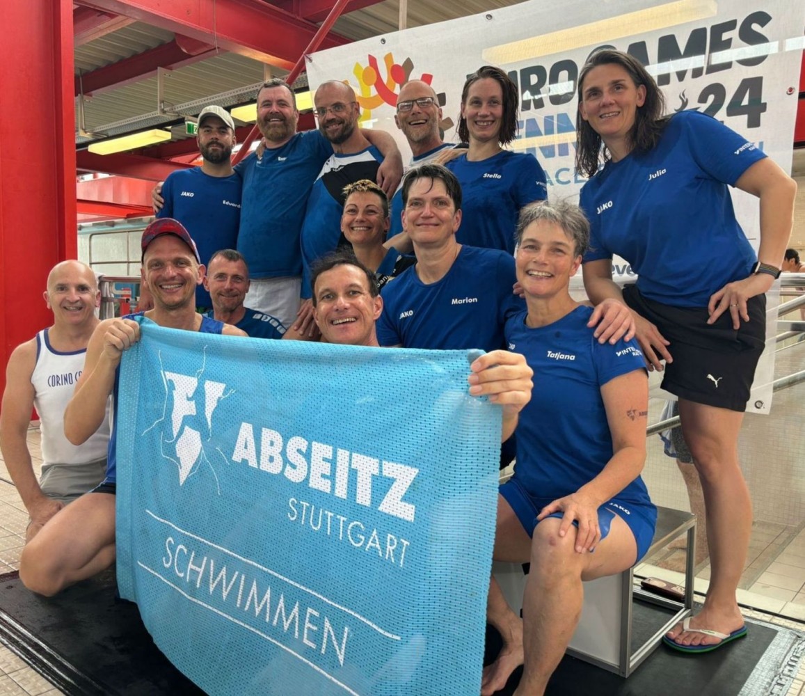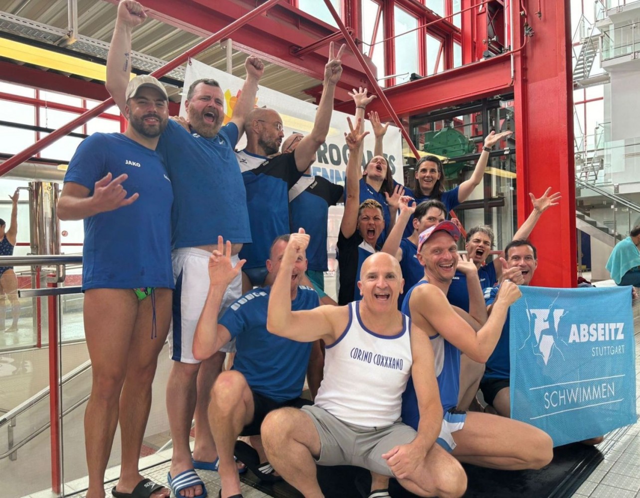 Oder 17? Ich schaue noch einmal auf den Zettel, nein, es ist die 16. Jetzt bitte keine Nervosität, das war doch alles gut organisiert, nicht wahr? Eigentlich bin ich aber noch ziemlich geschafft von den 100 Metern Delphin und den 200 Metern Lagen, das ist gerade mal 10 Minuten her. Wie kann man nur so blöd sein, sich für so viele Starts melden? Egal, ich gebe mein bestes, schließlich ist’s ja für den Verein und für alle, die hier für Stuttgart schwimmen. Auf der anderen Seite: die Muskeln spüren sich so fade an und ich bin noch ganz außer Atem. Aber auf der Nebenbahn, da sind die Düsseldorfer, denen wollen wir‘s doch zeigen! Außerdem: nachher gibt’s leckeres Essen beim Italiener und dann gibt’s ja noch die Party heute Abend in der Union Halle. Wenn wir da so tanzen, wie wir jetzt schwimmen, na dann wird das richtig gut. Klar, wir sind dieses Jahr ja auch mit 18 Leuten auf dem XMas-Turnier in Frankfurt und natürlich mächtig stolz, dass wir mit unseren fünf Frauen nicht nur viele Mixed-Staffeln, sondern nach vielen, vielen Jahren auch mal wieder Frauen-Staffeln schwimmen können. Die haben es eh‘ viel schwerer als wir Jungs, die müssen bei den Staffeln richtig oft ran.