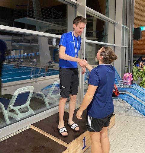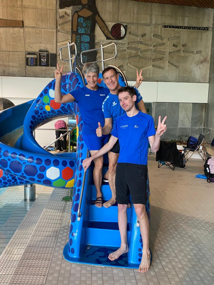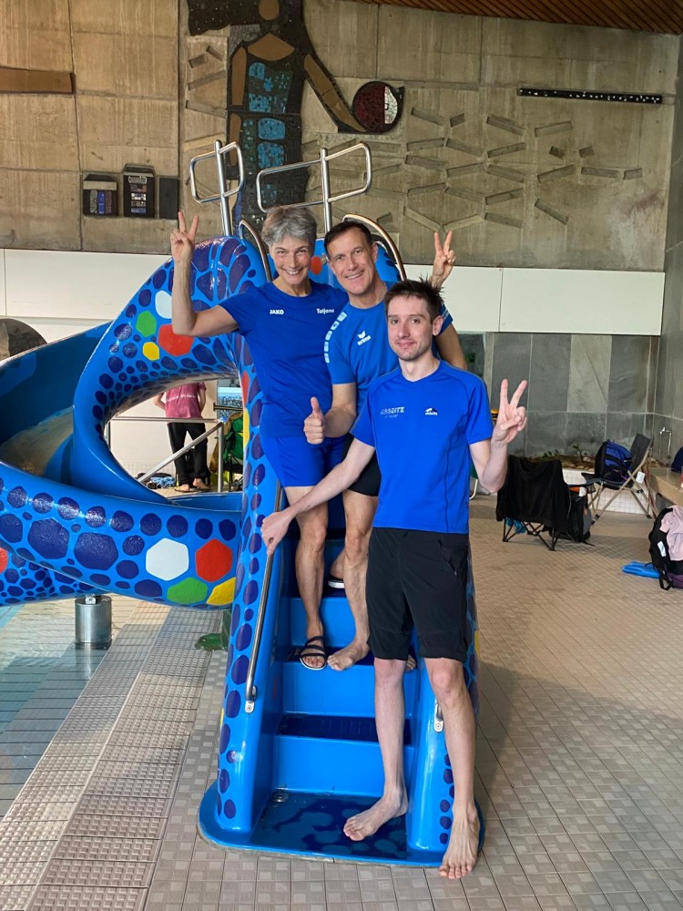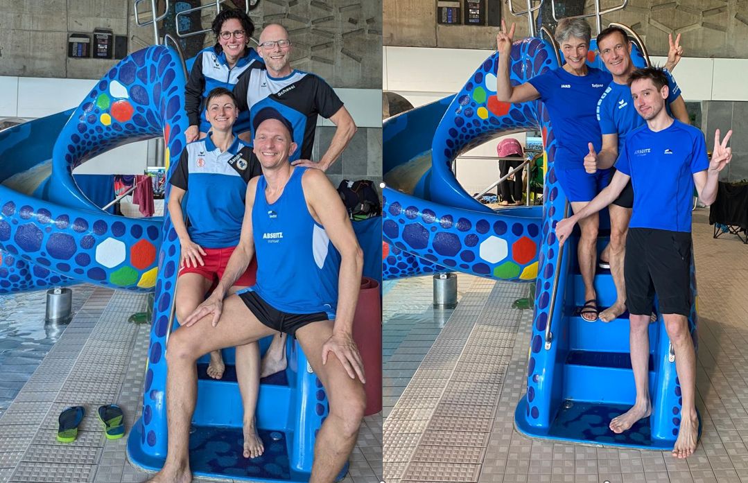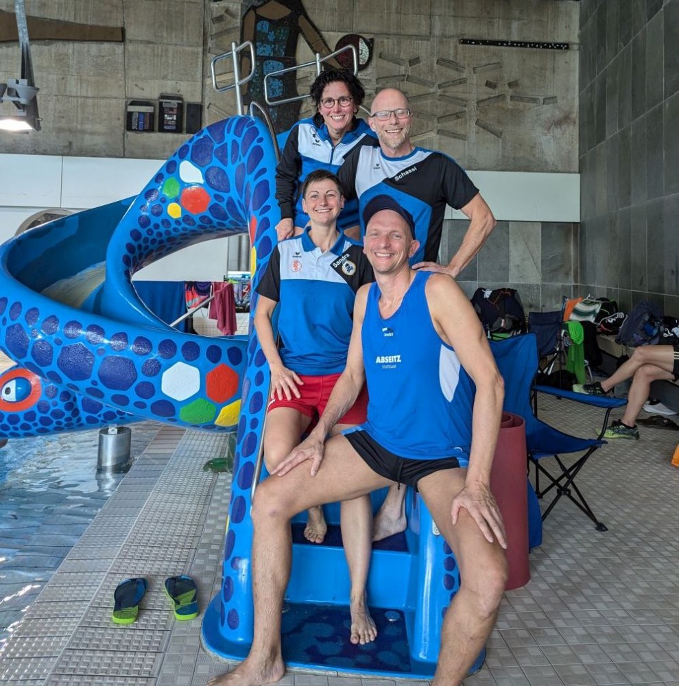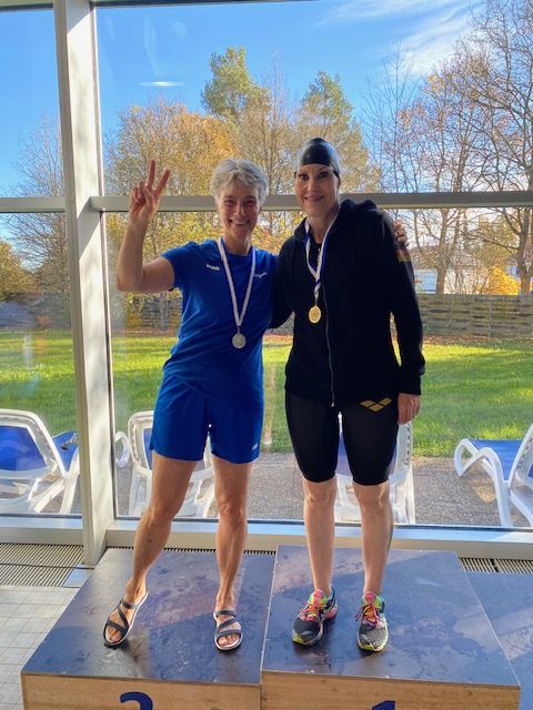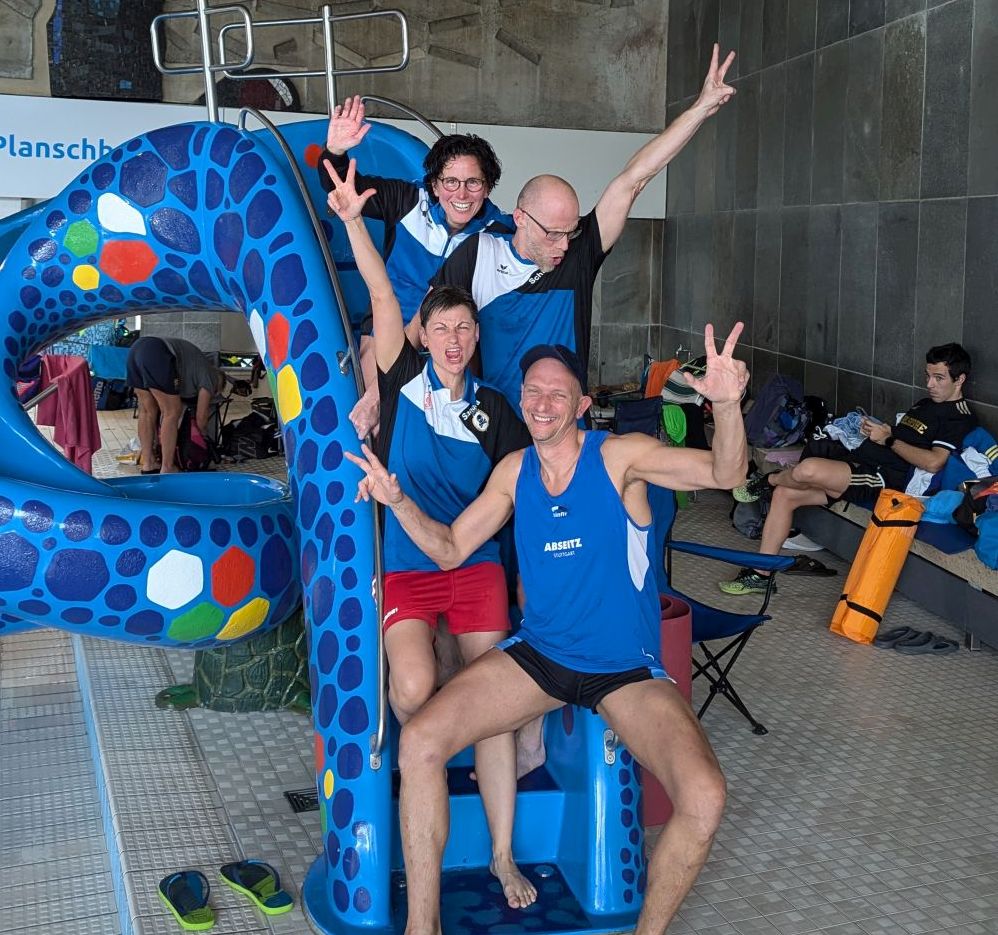 Für die Baden-Württembergischen Masters-Meisterschaften in Villingen hat sich unsere Abseitz-Mannschaft das Turnier-Wochenende aufgeteilt: am Samstag traten zwei Schwimmerinnen und zwei Schwimmer die Reise in den Schwarzwald-Baar-Kreis an. So konnten wir an diesem Tag auch eine Mixed-Staffel schwimmen. Am Sonntag folgten dann eine Frau und zwei Männer aus unserer Abteilung. Bei wunderschönem Herbstwetter gab es nach den beiden Wettkampftagen zufriedene Gesichter. Wir waren mit unseren Zeiten zufrieden und konnten auf der Rückreise einige Medaillen mit nach Stuttgart nehmen.