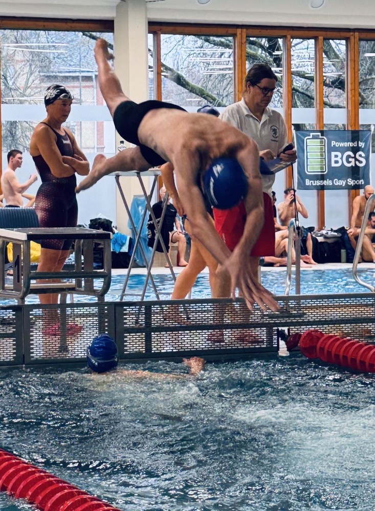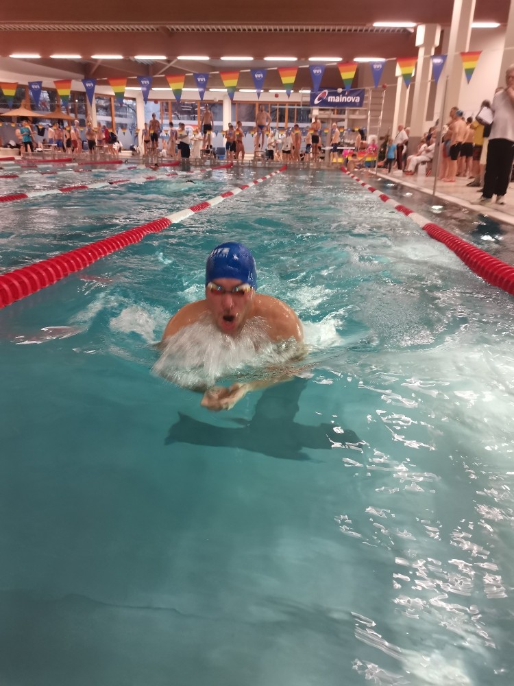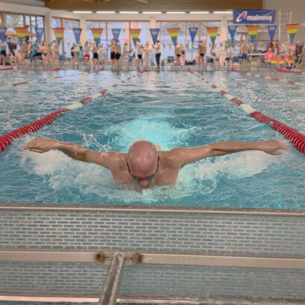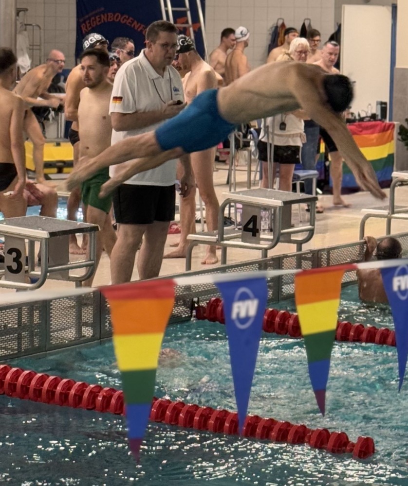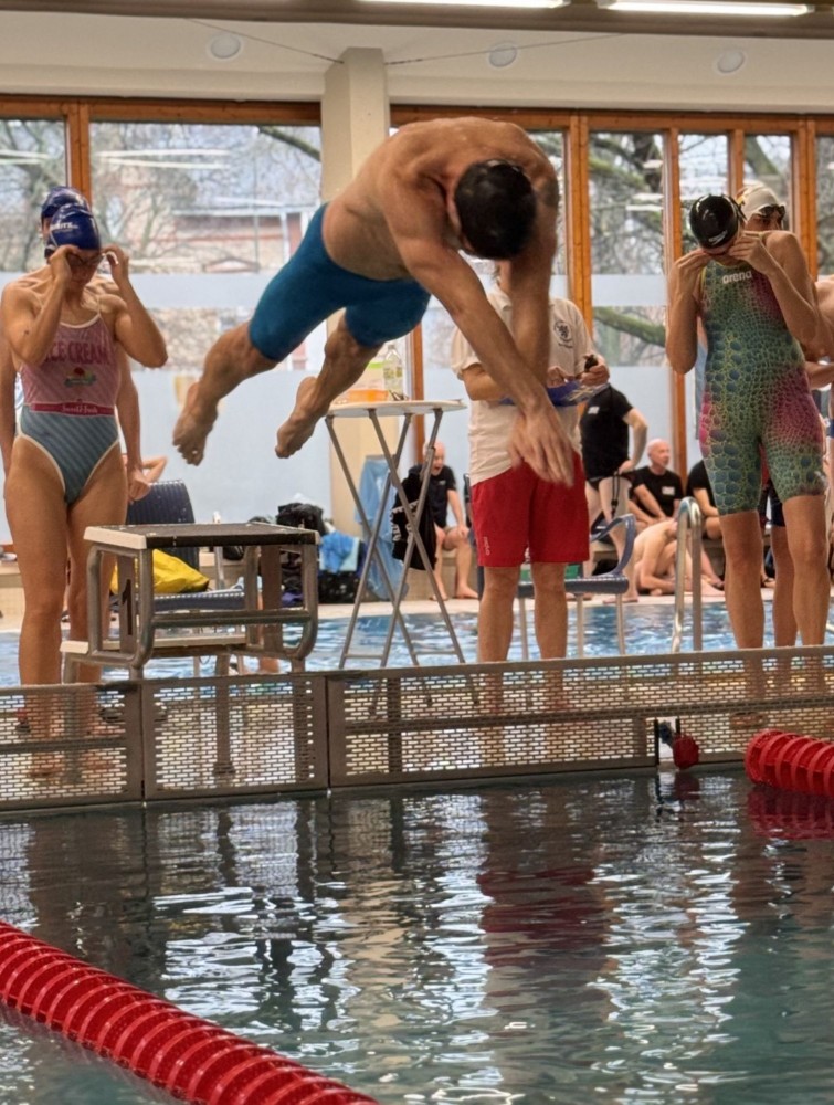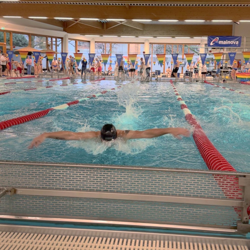 Das erste, was ich wahrnehme: es ist stockfinster. Das zweite: es ist 6:40 Uhr. So steht es zumindest mal auf dem Display meines Smartphon-Weckers. Aber es fühlt sich anders an, ich habe mich gerade eben wohl noch in einer absoluten Tiefschlaf-Phase befunden. Dass ich in zwei Stunden im Wasser sein werde und kurz darauf in der 4x50-Meter-Lagenstaffel mixed die 50 m Kraul sprinten soll, liegt im Moment weit außerhalb meines Vorstellungsvermögens. Aber es hilft nichts: Aufstehen ist angesagt, um einem Rekord Tribut zu zollen: fast 260 Schwimmerinnen und Schwimmer aus 46 Vereinen aus neun europäischen Ländern und über 1.000 Starts. So groß war ein Schwimmwettkampf im Rahmen des XMAS-Turniers des Frankfurter Volleyball-Vereins in seiner jahrzehntelangen Geschichte noch nie. Das hatte zwei Konsequenzen: das Turnier lief bis zum frühen Abend und es begann auch deutlich früher als in den Vorjahren. Deshalb das ungewöhnlich frühe und unangenehme Aufstehen.