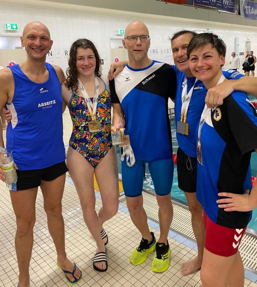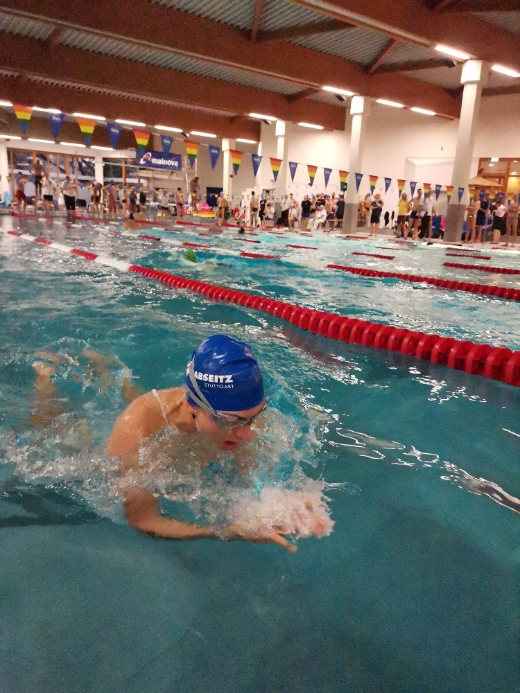 Schon der allererste Start des Turniers, die schon erwähnte Lagenstaffel brachte uns einen ersten Platz. Diese Goldmedaille war allerdings erst der Anfang eines erfolgreichen Wettkampftages und so kam in den Staffeln und Einzelstarts noch eine ansehnliche Medaillensammlung zustande. Mit Laura, Nadine und André sind drei aus unserem Team zum ersten Mal bei einem Schwimmturnier für Abseitz gestartet.