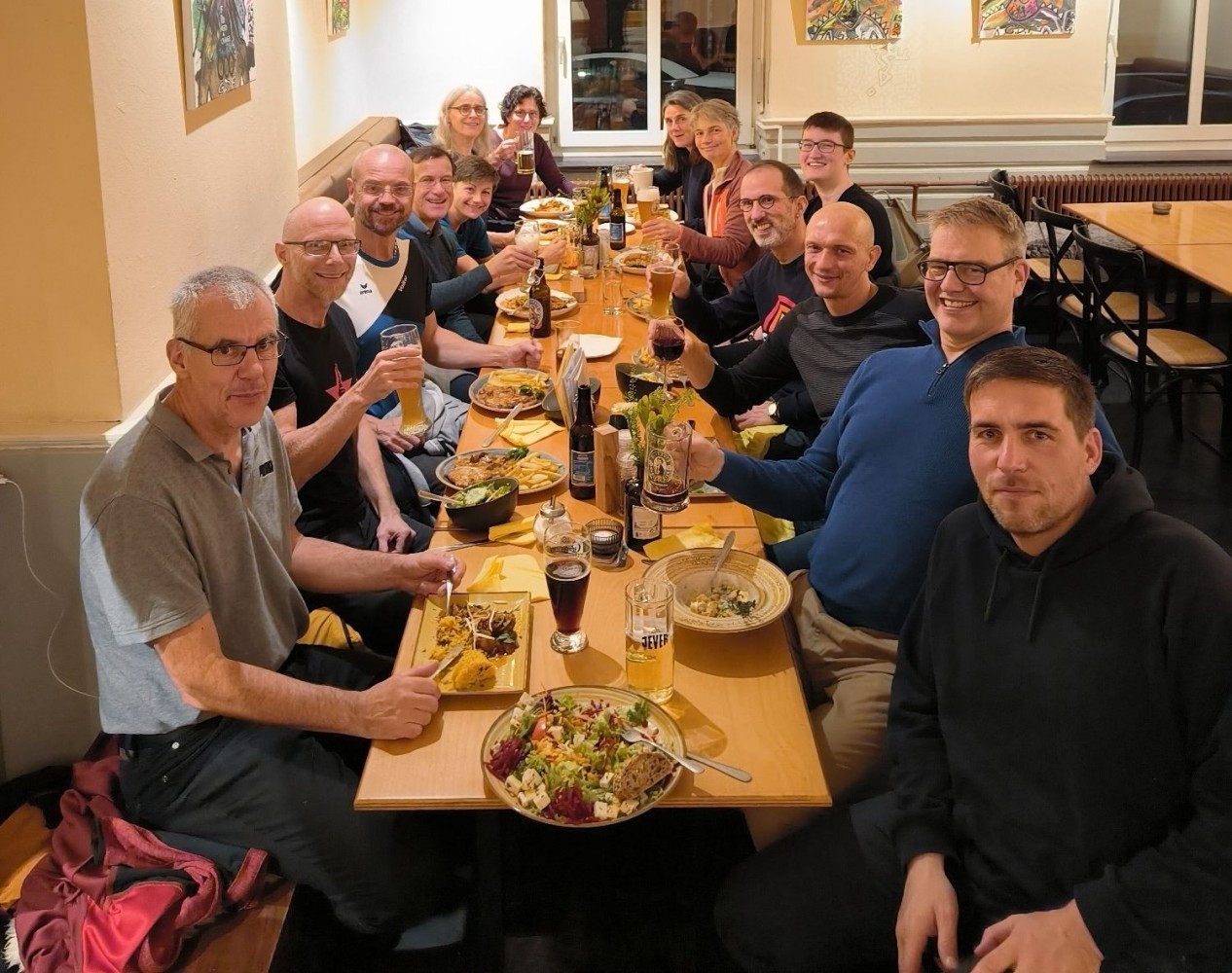 Nach dem langen und anstrengenden Wettkampftag haben wir uns in der Höchster Wunderbar erst einmal wieder gestärkt. Einige fanden dann zu später Stunde auch noch den Eingang zur Sportlerparty und zu noch späterer Stunde auch wieder den Ausgang. Nicht nur unseren Neulingen hat das Frankfurter Turnier-Wochenende Spaß gemacht, wir waren alle zusammen wieder einmal ein gutgelauntes Stuttgarter Team mit überzeugenden Schwimmleistungen und vielen gemeinsamen Aktivitäten.