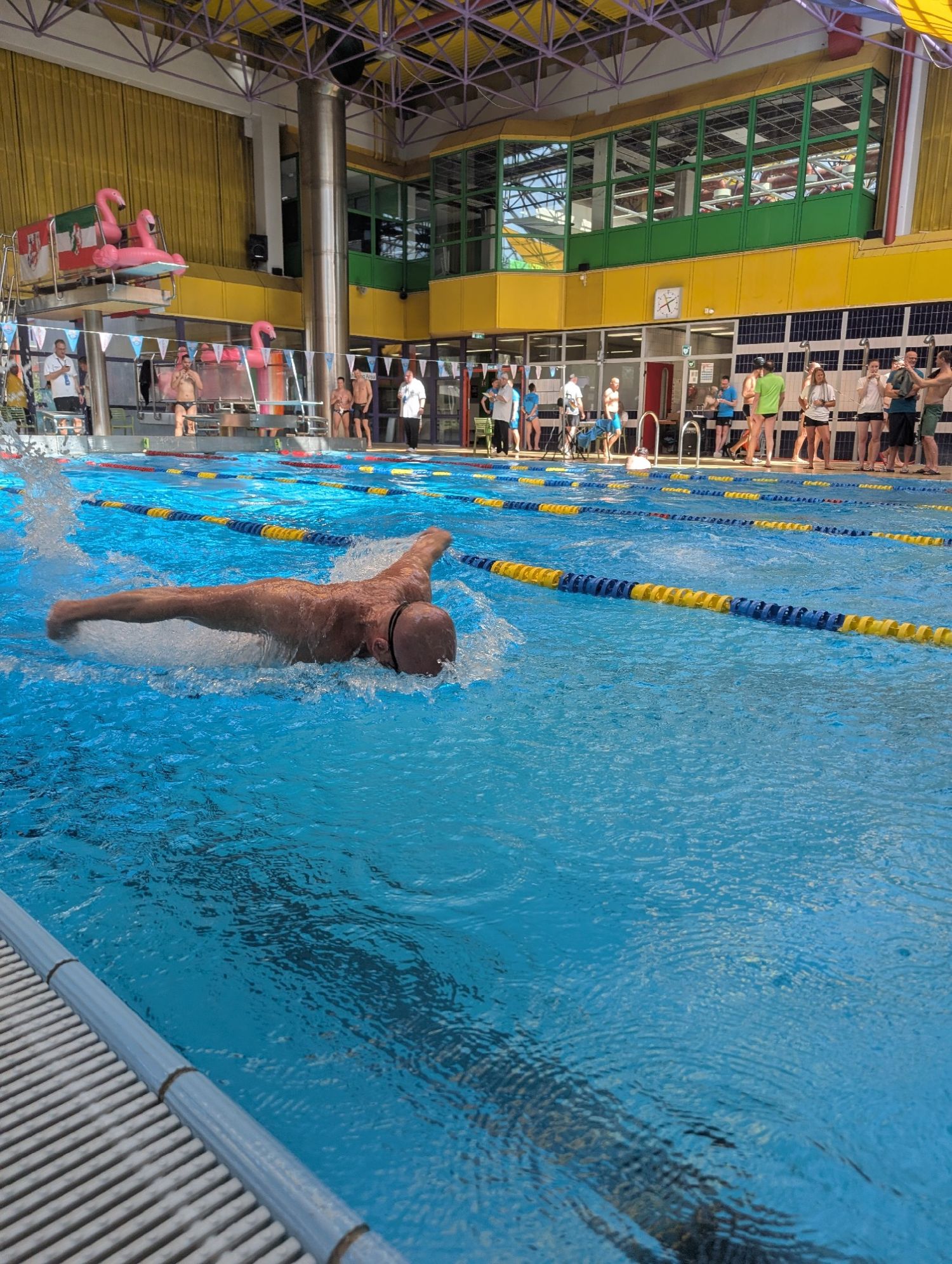 Glücklicherweise war dies der einzige Einsatz des Stuttgarter Teams, der nicht von Erfolg gekrönt war. Bei den regulären Starts überzeugten die zwei Schwimmerinnen und drei Schwimmer von Abseitz auf ganzer Linie. Bei der Freistil-Mixed-Staffel haben wir in der AK200+ den ersten Platz belegt und auch bei den Einzelstarts gab es zufriedene Schwaben-Gesichter im Rheinland.
