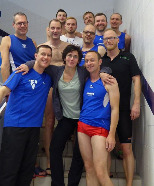 Endlich mal wieder bei den Staffeln vorne dabei sein. Dieser lange gehegte Wunsch ging Ende des Jahres beim Frankfurter Weihnachtsturnier in Erfüllung. 2014 gab es natürlich auch nur wenige Möglichkeiten, dieses Ziel zu erreichen Bei der Zürichsee-Überquerung im Sommer gab es naturgemäß keine Staffeln und bei den Baden-Württembergischen Masters-Meisterschaften in Tübingen und dem BGS-Turnier in Brüssel waren wir zu wenige Teilnehmer für eine Staffel. Dafür traten wir dann in Frankfurt mit einer großen Mannschaft auf, nämlich mit 12 Schwimmerinnen und Schwimmern. Es ist auch unseren Turnierneulingen Thomas, Benjamin und Florian zu verdanken, dass Stuttgart mal wieder richtig stark bei einem Turnier vertreten war. Bei der Brust- und der Lagenstaffel hatten wir dann jeweils mit einem dritten Platz den lange verdienten Erfolg errungen. Selbst bei der Freistilstaffel konnten wir gegenüber der starken Konkurrenz noch einen guten vierten Platz herausschwimmen. Aber auch bei den Einzelstarts gab es eine Menge erfreulicher Überraschungen. Vor allem bei unseren Debütanten kam es noch zu unerwarteten, kraftvollen Steigerungen. Für 2015 heißt es jetzt: weiter so!