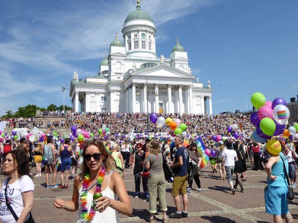 Noch nie haben die Eurogames an einem Ort stattgefunden, der so hoch im Norden liegt. Wer bei Finnland jetzt an kalte Temperaturen und Regenwetter denkt, der täuscht sich. Währen des schwul-lesbischen Europaturniers ging es in Helsinki heiß her. Sonnenbrille und kurze Hosen waren beim heimischen Kofferpacken bessere Wahl als Regenschirm und Pullover. Der finnische Wettergott meinte es wirklich gut mit den Sportlerinnen und Sportlern aus ganz Europa. Die Schönwetterperiode hielt von der Eröffnungsveranstaltung am Mittwoch im Eurogames-Village beim Bahnhof über die beiden folgenden Wettkampftage an und fand ihren Höhepunkt am Samstag bei der Helsinki Pride. Die Parade begann am Senatsplatz am Dom mit einer beeindruckenden Menschenmenge und einem wogendem Meer aus bunten Luftballons. Die schiere Länge des Paraden-Zugs stellte selbst den CSD in Stuttgart in einen dunklen Schatten. Es gab weniger Wägen als in anderen Städten, aber man hatte den Eindruck, halb Helsinki läuft bei der Parade mit.