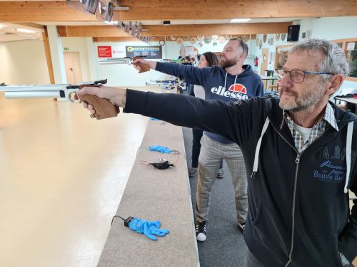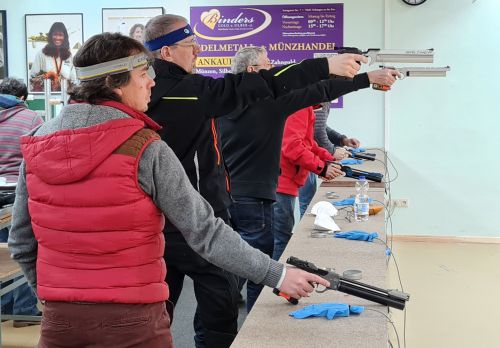 Inzwischen haben die meisten unserer Schützinnen und Schützen ihre eigenen "Sportgeräte" und die Gruppe ist auf 21 Personen angewachsen. Der Anteil unserer Pistolenschützen/innen ist auch deutlich gestiegen, da diese Disziplin vielen einen leichteren Einstieg in das Sportschiessen ermöglicht.