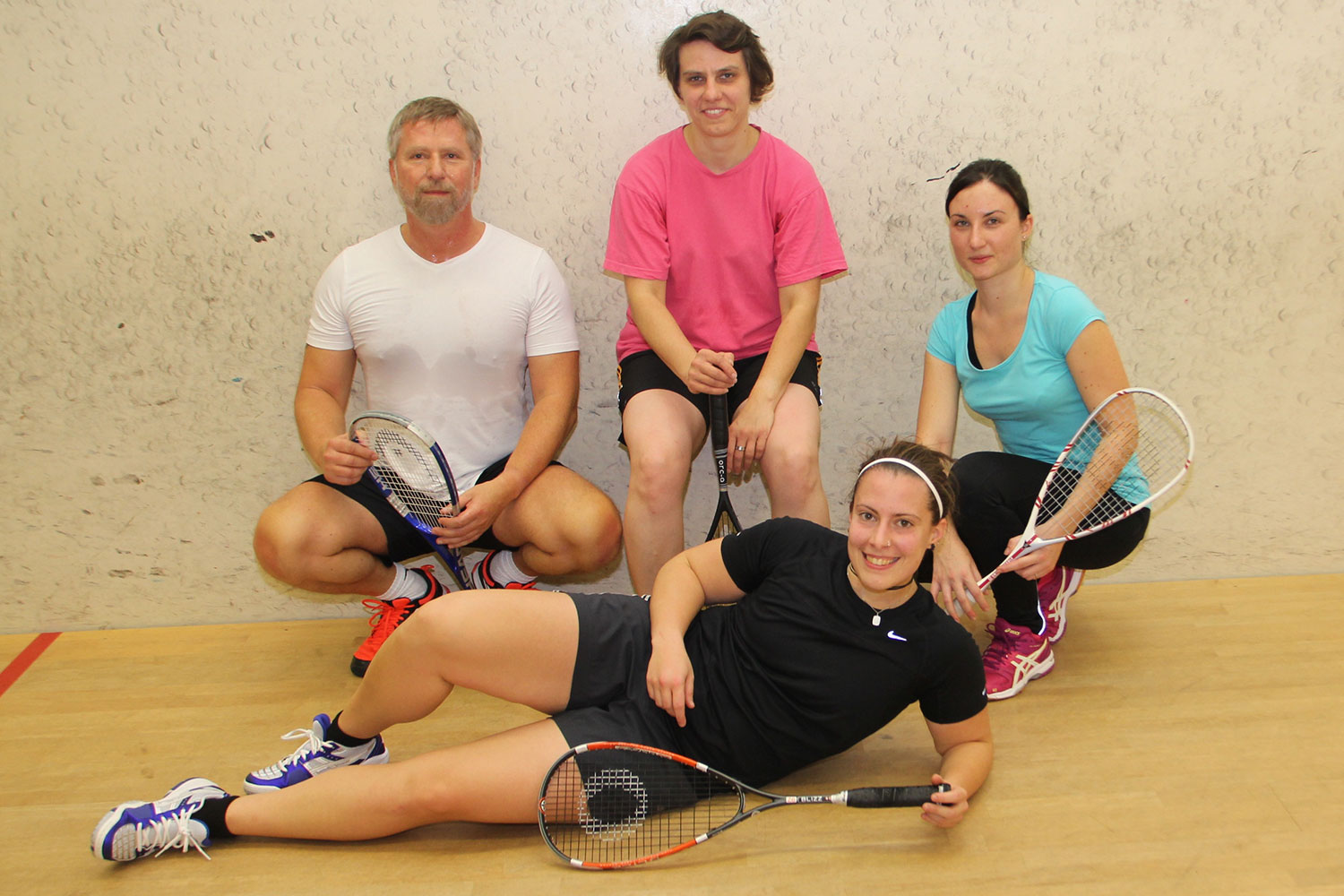 Dort spielen wir donnerstags von 19:30 – 20:30 Uhr parallel in drei Courts. Je nach Beteiligung in der Regel mit 10-minütigem Durchwechseln. Aber auch da kommt Frau/Mann schon schön ins Schwitzen :--)